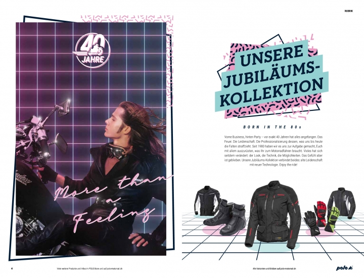 Idee: Gegründet 1980, 40 Jahre am Markt. Zum Jubiläum reitet POLO auf der Stranger-Things-Welle und knüpft nostalgisch an den Look, den Sound und das Feeling der 80er an. Der Slogan wird zum Ohrwurm. Das Keyvisual zum Reminder. Die Marke zum Partner in Crime. POLO ist mehr als Motorrad. Und Motorradfahren ist – more than a feeling.