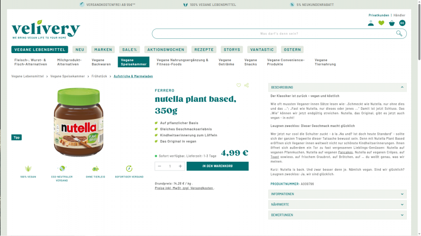 Wie oft mussten Veganer:innen Sätze lesen wie: „Schmeckt wie Nutella, nur ohne dies und das …“; „Fast wie Nutella, nur dieses oder jenes …“ Damit ist jetzt Schluss. Das „Wie“ können wir endgültig streichen. Nutella, das Original, gibt es jetzt auch vegan – in echt!